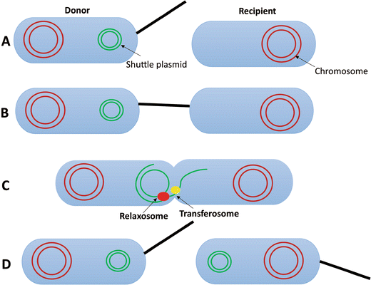 Reproduksi bakteri tipe ini dapat disebut rekombinasi gen, yaitu peristiwa bercampurnya materi genetik (DNA) dari dua sel bakteri yang berbeda, kemudian terbentuk DNA rekombinan. Proses ini dapat terjadi melalu cara berikut.