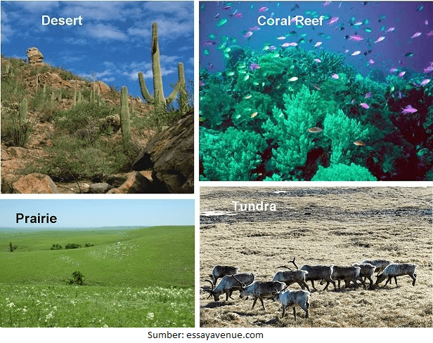 Bioma diartikan sebagai kesatuan antara iklim dominan dan vegetasi serta hewan yang hidup di dalam iklim dominan tersebut. bakau, dan ekosistem terumbu karang.