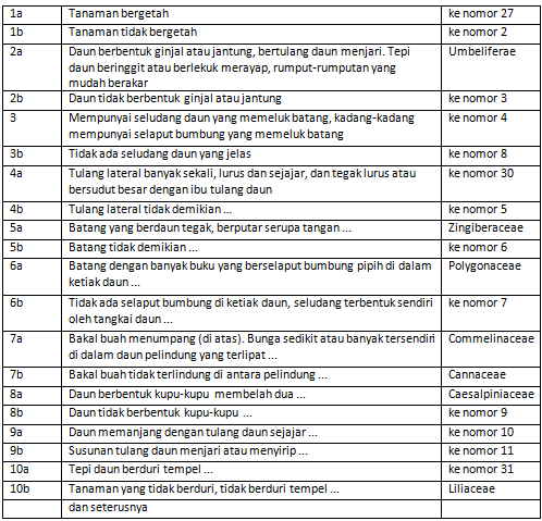 Berikut adalah benar mengenai kunci determinasi adalah....