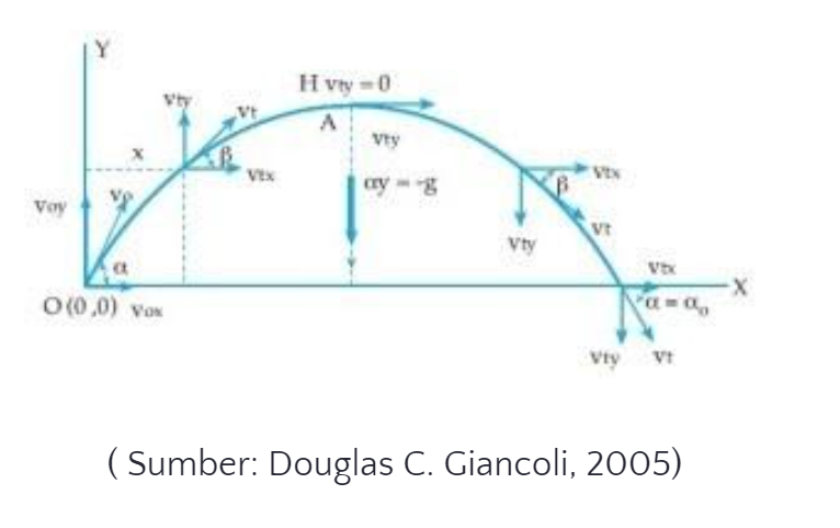 Gerak pada sumbu y selalu mendapatkan percepatan ay = -g dimana g adalah percepatan gravitasi.