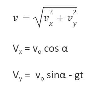 Kecepatan benda setiap saat merupakan resultan dari kecepatan benda pada arah sumbu x dan kecepatan benda pada arah sumbu y, sehingga kecepatan benda setiap saat :