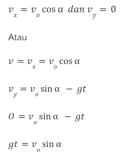Kecepatan setelah t adalah Vty = V0y – g.t