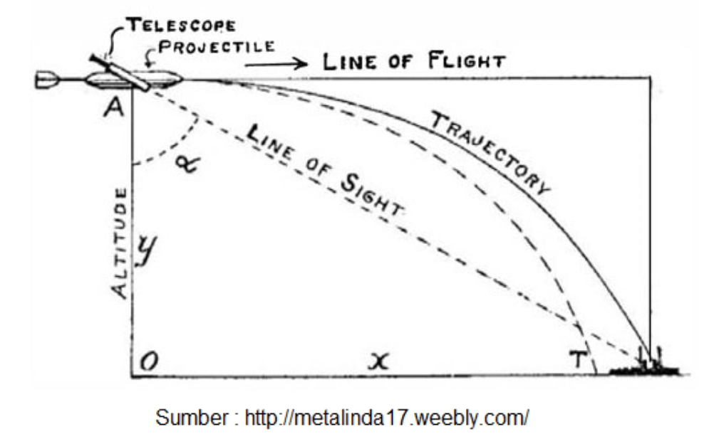 Pesawat bergerak ke kanan sehingga memberikan kecepatan awal benda hanya arah sumbu-x yang menyebabkan benda bergerak parabola yang pada kasus menjatuhkan rudal ini hanya seperempat lingkaran saja. Selain itu, efek dari gravitasi dengan benda yang bergerak dengan kecepatan awal arah x yang menyebabkan benda bergerak secara parabola.