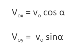 Jika kecepatan awal v0 diuraikan pada sumbu x dan sumbu y di dapat v0x dan v0y dimana :