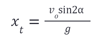 Nilai tersebut dua kali dari nilai waktu yang diperlukan benda untuk mencapai tempat tertinggi. Jarak mendatar yang ditempuh pada saat mencapai tempat terjauh :