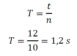 Karena untuk 10 getaran diperlukan waktu 12 s maka periodenya: