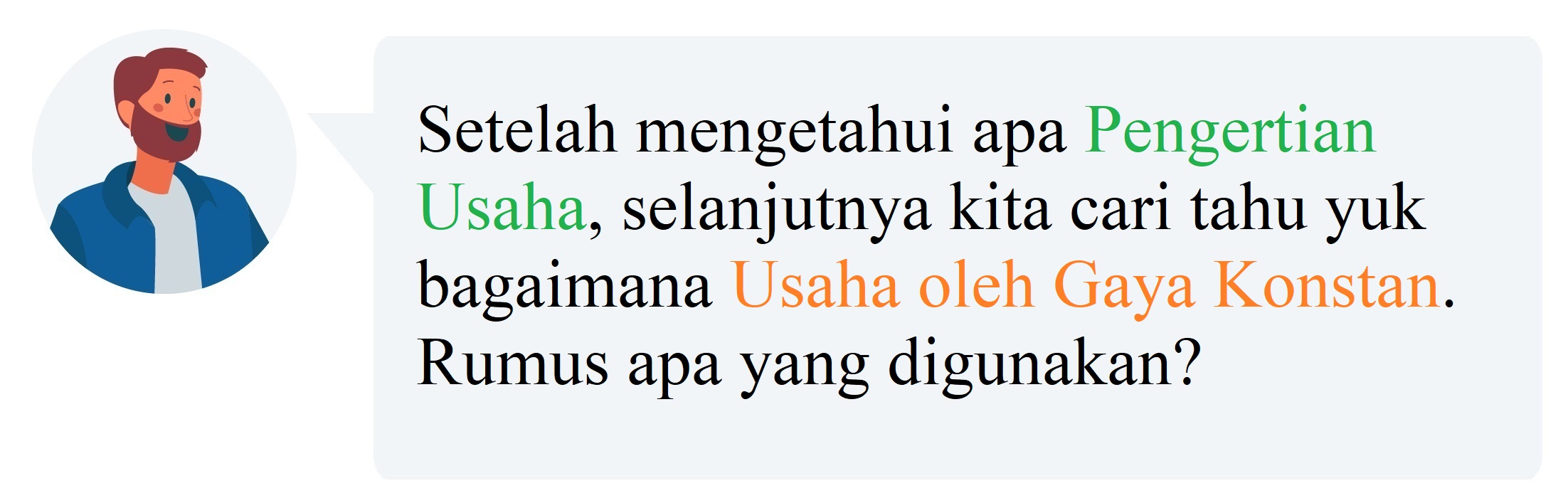 Pengertian usaha dalam kehidupan sehari-hari berbeda dengan pengertian usaha dalam fisika. Untuk memahami perbedaan pengertian tersebut di bawah ini diberikan beberapa contoh dan penjelasannya.