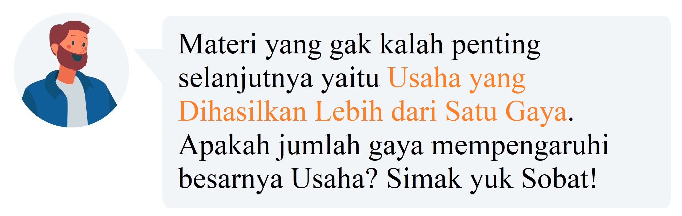 Sobat Pintar, bila kita melihat kejadian sehari-hari, dapat kita lihat bahwa sebuah benda akan dikenai gaya lebih dari satu. Oleh karena itu, jika ditanya berapa usaha yang dilakukan oleh gaya-gaya tersebut maka haruslah dihitung usaha oleh masing-masing gaya-gaya tersebut, kemudian usaha dari masing-masing gaya tersebut dijumlahkan.