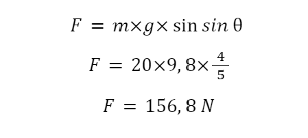 Agar balok bergerak ke atas dengan kecepatan konstan maka gaya yang dikerahkan sama dengan komponen gaya gravitasi yang sejajar dengan bidang