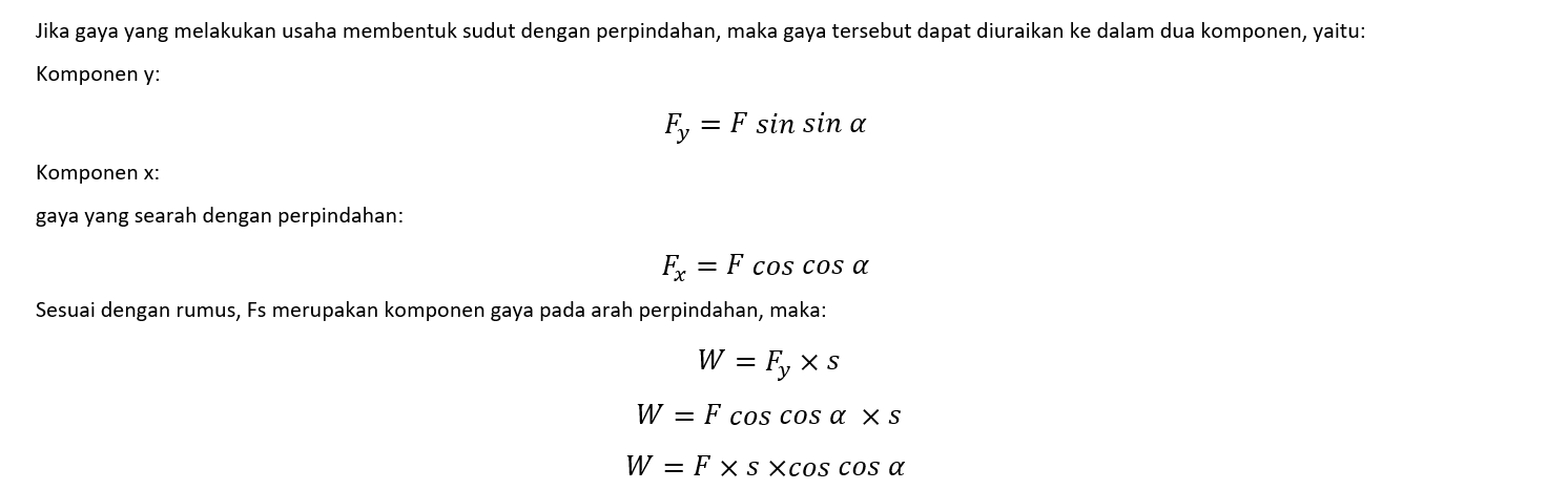 Jika gaya yang bekerja membentuk sudut dengan arah perpindahan, perhatikan gambar dibawah ini