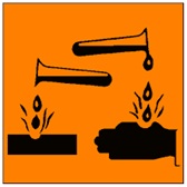 Bahan kimia dengan label ini dapat menyebabkan karat pada logam dan bahan korosif yang menyebabkan kulit terbakar.