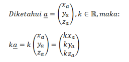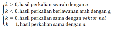 Perkalian antara vektor dengan skalar adalah hasil kali suatu bilangan skalar k dengan sebuah vektor a. Secara sistematis dapat dituliskan: