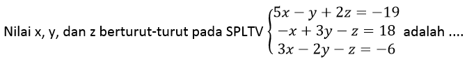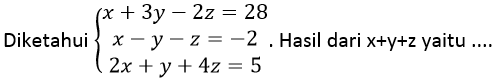 Diketahui sistem persamaan linier tiga variabel sebagai berikut