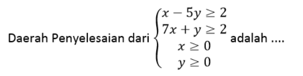 Maka daerah yang diarsir adalah daerah yang memuat titik (1,0)