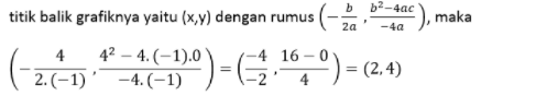 y=-02+4.0= 0, maka grafik memotong sumbu y di titik (0,0)