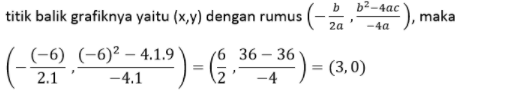 - Jika suatu fungsi kuadrat diketahui titik baliknya P(p , q), maka persamaannya adalah f(x) = a(x – p)2 + q