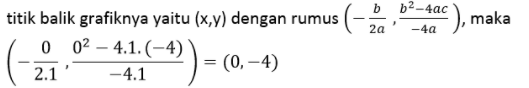 y=02-4= -4 , maka grafik memotong sumbu y di titik (0,-4)