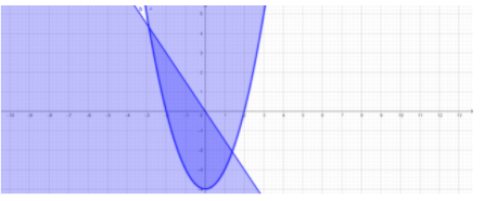 - Menentukan daerah yang diarsir dengan menguji titik (1,0) pada y<-x2+4x