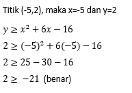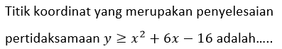 Titik koordinat yang merupakan penyelesaian merupakan titik yang memenuhi pertidaksamaan