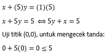 Dengan demikian, pertidaksamaan garisnya 5y+x=5