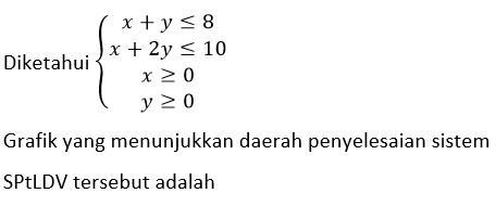 Sistem pertidaksamaan linear dua variabel dengan daerah penyelesaian pada grafik tersebut adalah ....