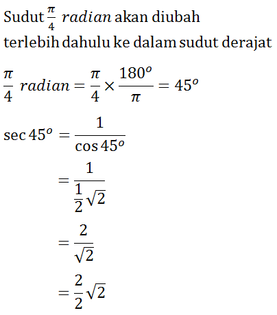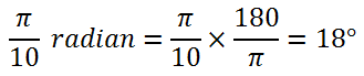 Untuk mengubah radian ke dalam derajat maka menggunakan rumus