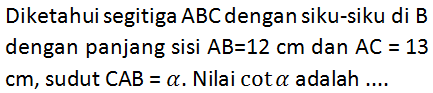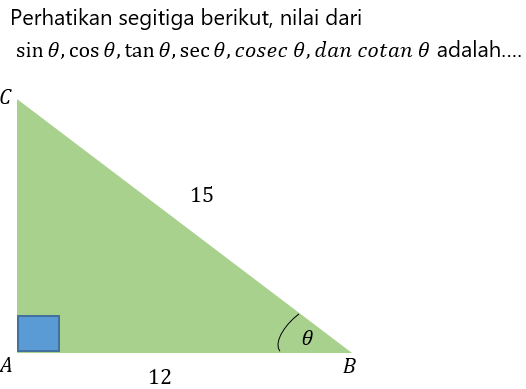 Dalam menentukan rasio trigonometri, kita dapat menggunakan segitiga siku-siku yang diketahui panjang ketiga sisinya. Jika salah satu sisinya belum diketahui, kita harus mencari tahu terlebih dahulu panjang sisinya dengan rumus Teorema Pythagoras. Masih ingat teorema Pythagoras, Sobat?