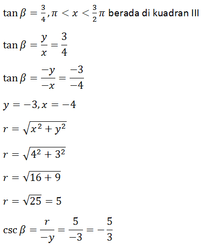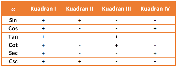 Nilai trigonometri dari suatu sudut dapat bertanda negatif bergantung pada letak kuadran sudut tersebut.
