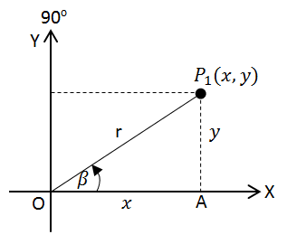 Titik P1 (x,y) terletak di kuadran I, membentuk sudut AOP1 sebesar ß.