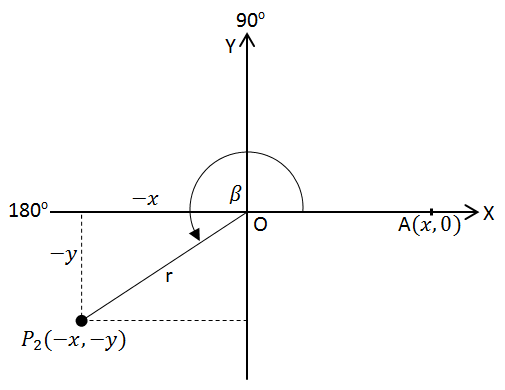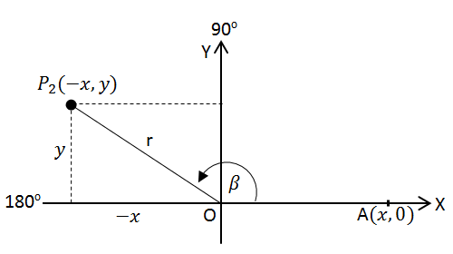 Titik P2 (-x,y) terletak di kuadran II, membentuk sudut AOP2 sebesar ß.