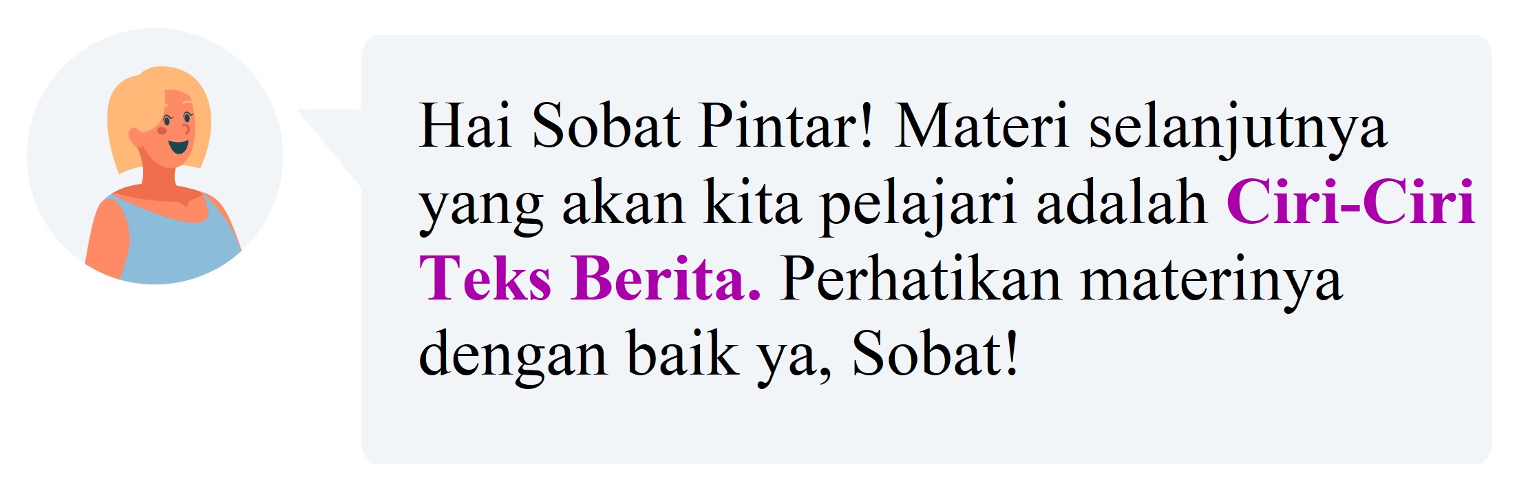 Jadi, teks berita juga memiliki ciri-ciri loh sobat pintar. Berikut ini adalah ciri-ciri teks berita