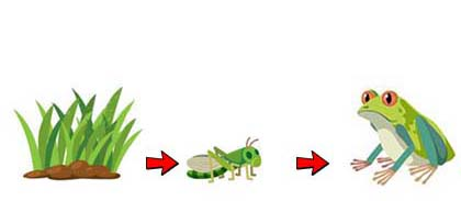 Jika jumlah populasi katak tiba-tiba menghilang, maka jumlah populasi rumput menurun dan jumlah populasi belalang meningkat.