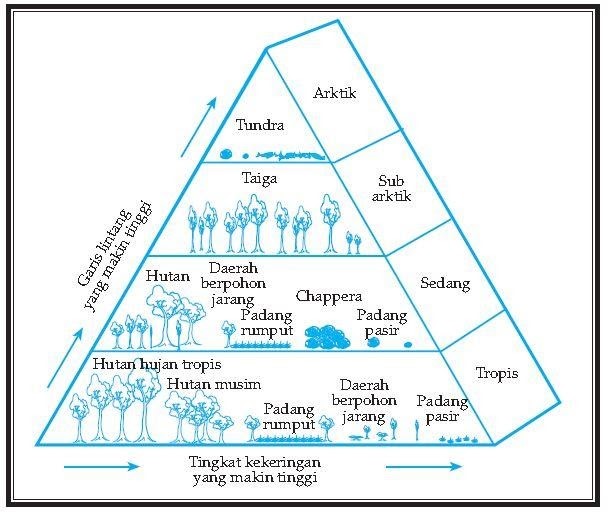 Urutan bioma dari daerah ekuator ke kutub, sama dengan urutan bioma dari daratan di daerah ekuator ke arah vertikal. Ke arah vertikal (meninggi), suhu dan curah hujan menentukan komunitas.