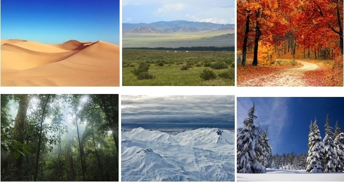 - Sabana: padang rumput yang diselingi oleh pohon-pohon tinggi.