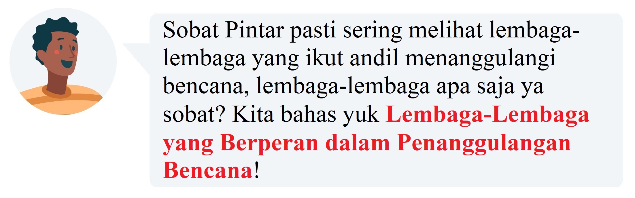 Perlu dicatat bahwa ini hanya beberapa contoh wilayah rawan bencana di Indonesia, dan masih ada banyak wilayah lain yang juga rentan terhadap bencana alam. Pemerintah dan instansi terkait terus berupaya untuk melakukan mitigasi bencana dan meningkatkan kesiapsiagaan masyarakat dalam menghadapi ancaman bencana. Lembaga-Lembaga apa sajakah yang berperan dalam penanggulangan bencana alam? Yuk kita bahas!
