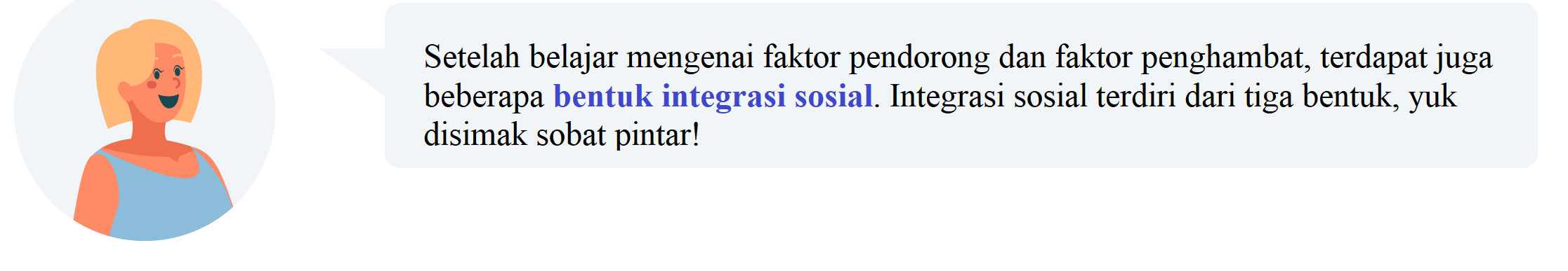 Terdapat tiga bentuk integrasi sosial, yaitu:
