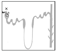 Bagian yang ditunjuk oleh huruf X adalah glomerulus. Kerusakan pada glomerulus akan mengakibatkan albuminaria, yaitu kelainan yang disebabkan karena protein tidak tersaring di glomerulus, akibatnya pada urine masih mengandung protein. Beberapa gangguan lain yang bisa terjadi di ginjal: