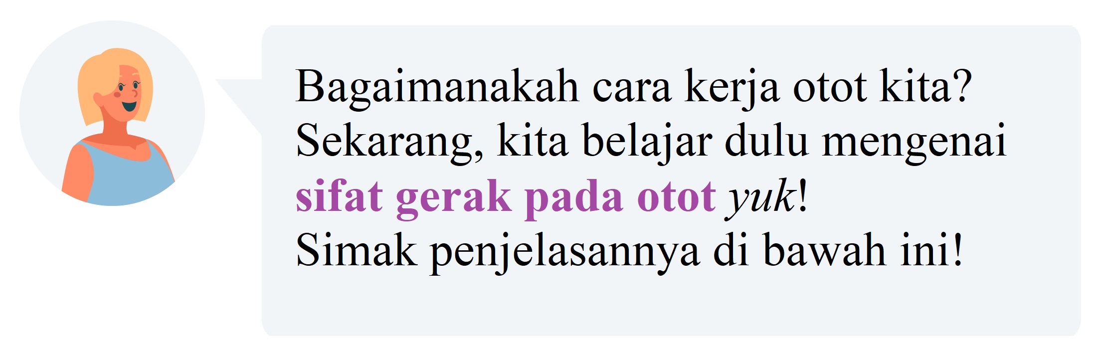 Sobat Pintar, sekarang kita pelajari dulu sifat gerak pada otot kita.