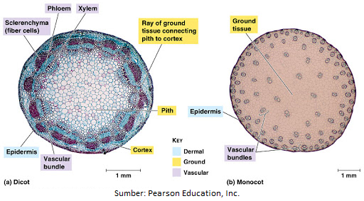 Gambar irisan melintang batang tanaman dikotil dan monokotil