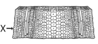 Bagian yang ditunjuk huruf X adalah epidermis, yaitu struktur terluar dari batang. Epidermis tersusun atas lapisan sel yang telah mengalami penebalan kutikula yang berfungsi melindungi batang dari kekeringan. Pada umumnya, sel – sel epidermis berbentuk rectangular dan tersusun rapat tanpa ada ruang antar sel. Susunan tersebut membuat terjadinya pengurangan transpirasi dan dapat melindungi jaringan di sebelah dalamnya dari kerusakan dan serangan hama.