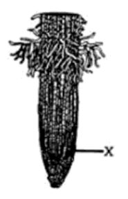 Bagian ditunjuk huruf X adalah meristem apikal yang berperan dalam pembelahan sel.