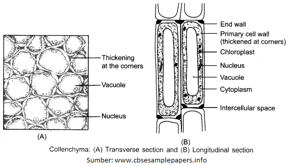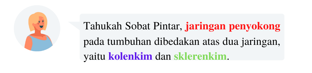 Kolenkim terdapat di dasar epidermis batang dan berfungsi untuk menguatkan batang muda, tangkai daun, dan akar. Sklerenkim berfungsi menyokong dan menguatkan jaringan dewasa. Perhatikan Gambar dibawah ini :