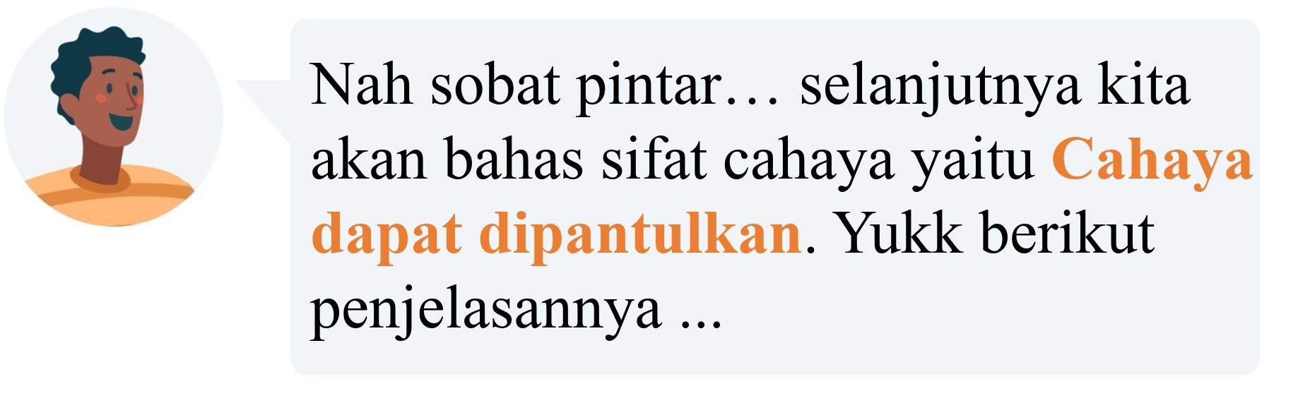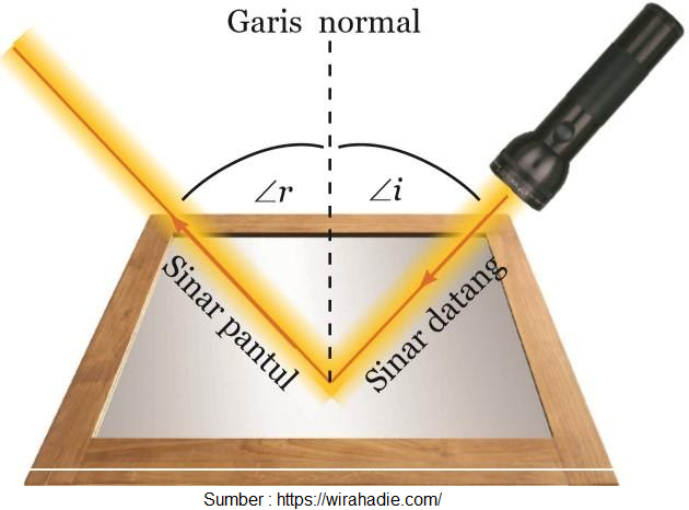 Cahaya termasuk ke dalam salah satu gelombang dalam fisika, yaitu termasuk gelombang elektromagnetik. Nah sebagai gelombang cahaya dapat dipantulkan (direfleksikan). Pemantulan cahaya akan terjadi ketika cahaya mengenai sebuah bidang pantul (benda-benda yang dapat memantulkan cahaya) contohnya cermin.