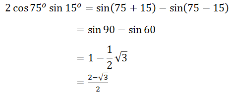 Hasil dari 2 cos 75° sin 15° adalah ....