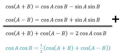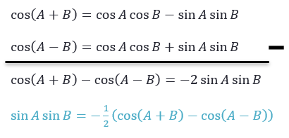 Selanjutnya, untuk mendapatkan rumus perkalian sinus dan cosinus, kita eliminasi rumus jumlah dan selisih cosinus.