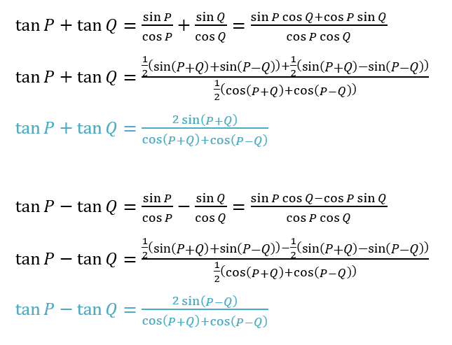 Sebagai tambahan, berikut adalah rumus penjumlahan dan selisih untuk tangen