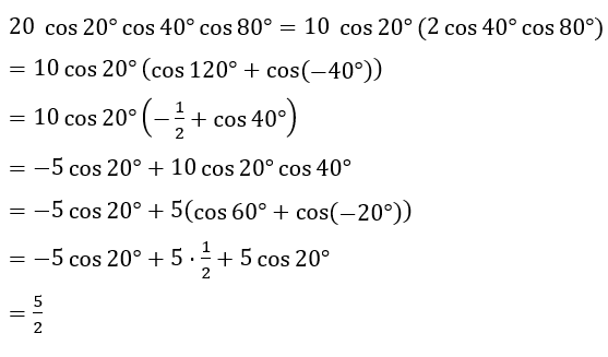 Nilai dari 20 cos 20° cos 40° cos 80° adalah ....