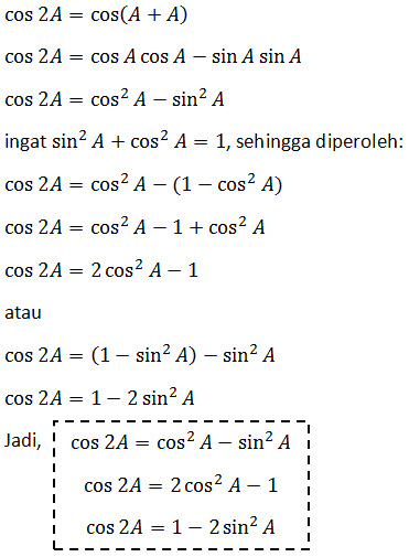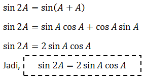 Rumus trigonometri untuk sudut rangkap dapat dicari dengan memanfaatkan rumus jumlah dan selisih dua sudut pada pembahasan sebelumnya.