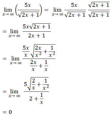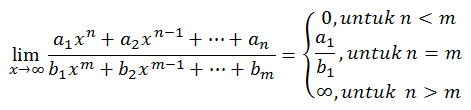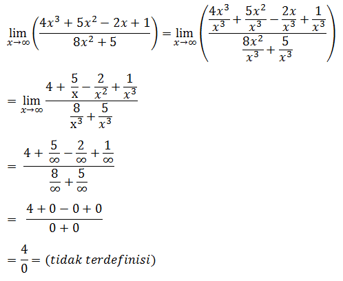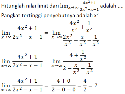 dengan membagi pembilang dan penyebut dengan pangkat tertinggi dari penyebutnya.