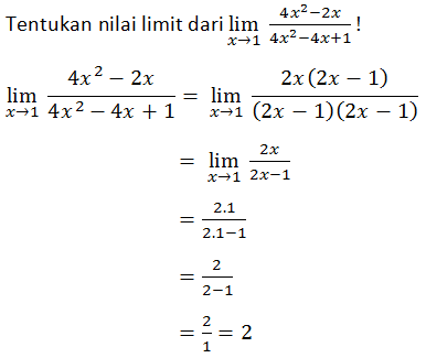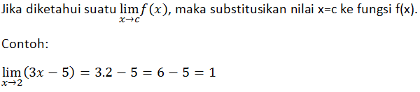 Nilai limit suatu fungsi aljabar dapat ditentukan dengan beberapa cara, antara lain: